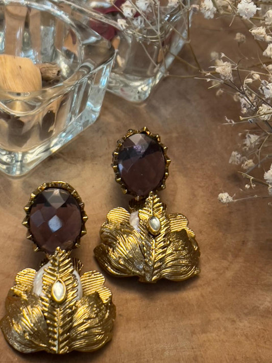 Gold Statement Earrings with Red & Blue Stones