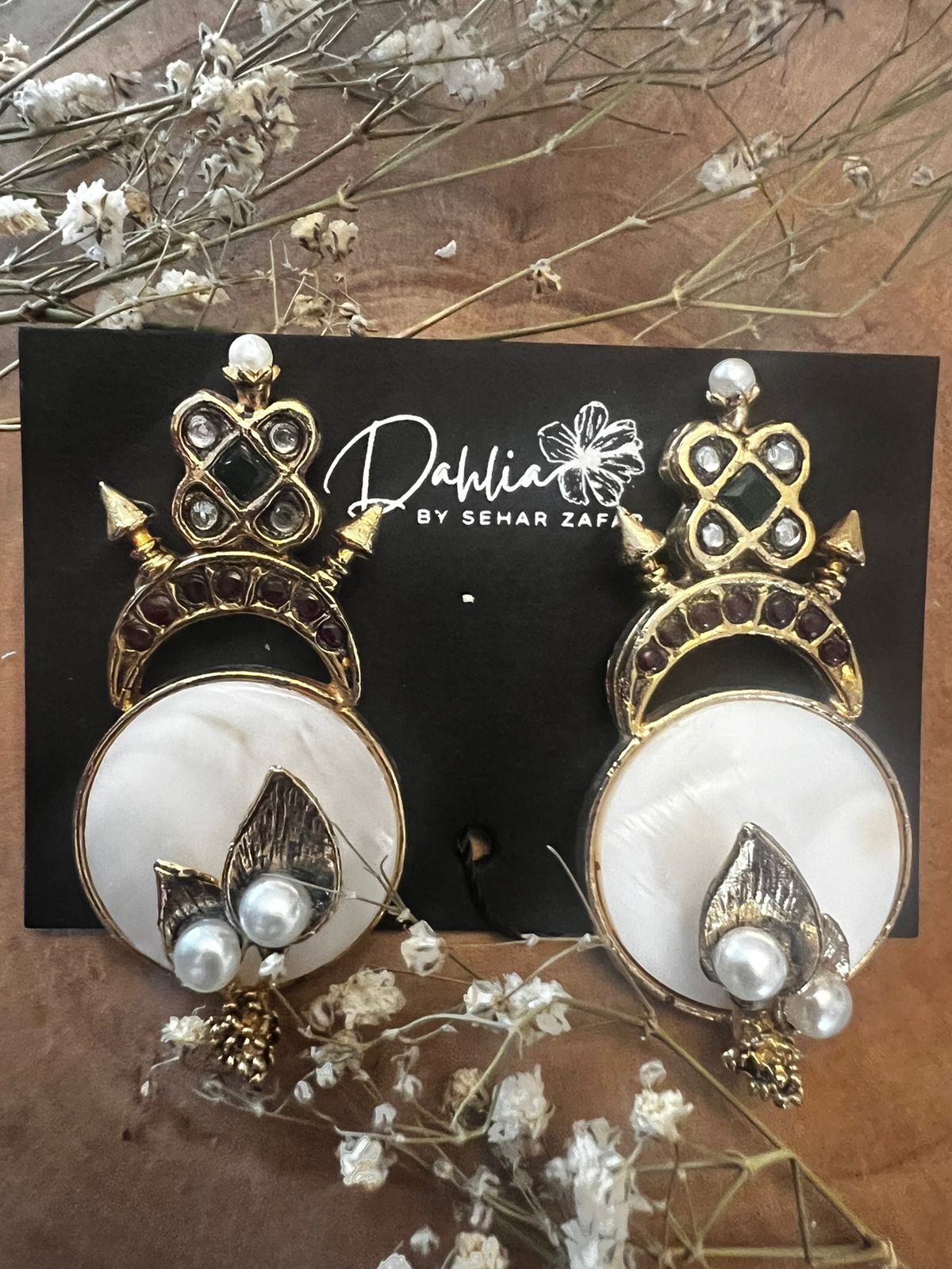 Kundan, white-shell stone, pearls with silver or emerald stones