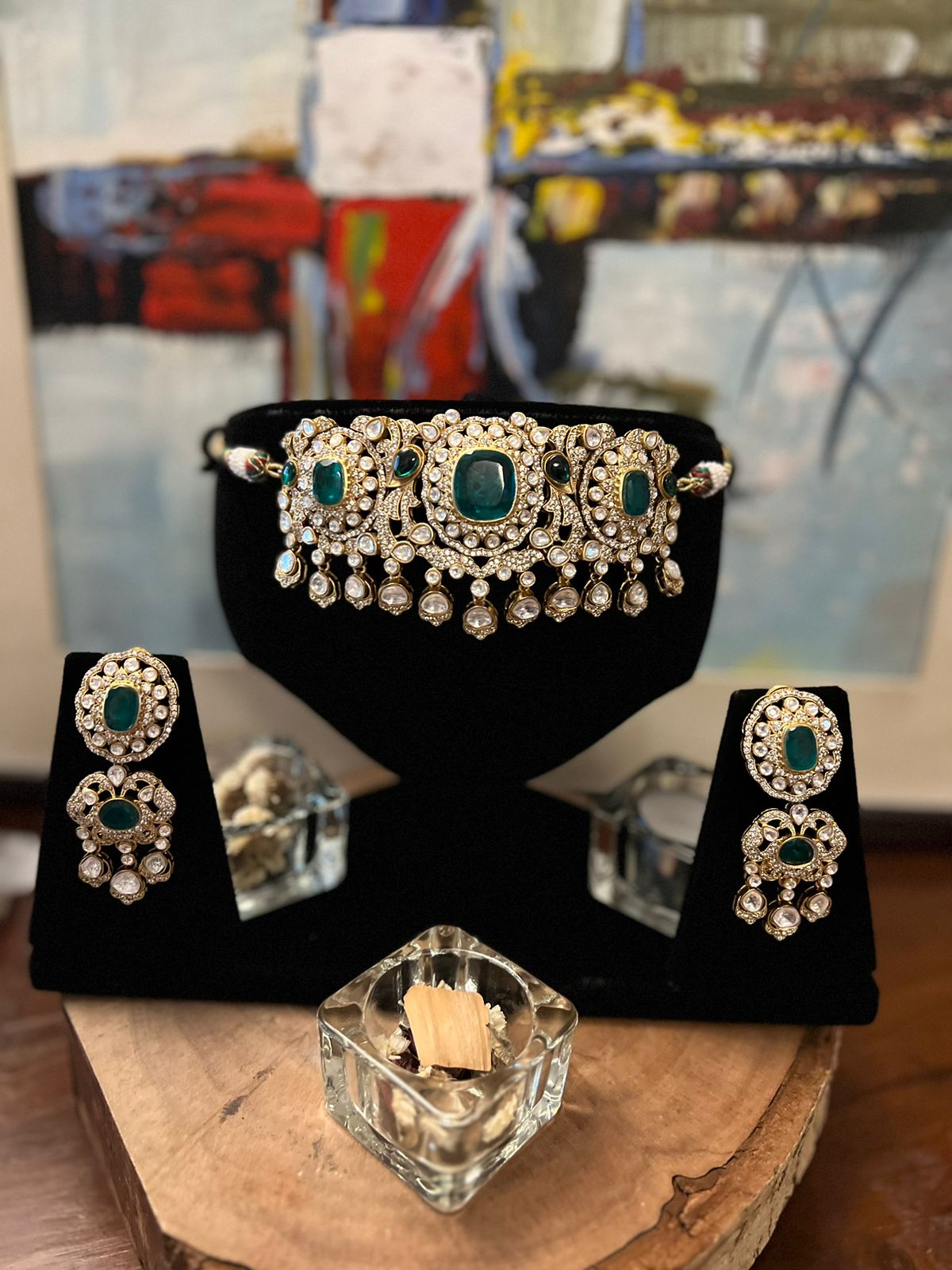 Experience luxury with the Layla Festive Edit. This collection features exquisite 24 karat gold plated items, adorned with polkis, zircon, emeralds, and ruby stone accents. Elevate your style and make a statement with this opulent collection.