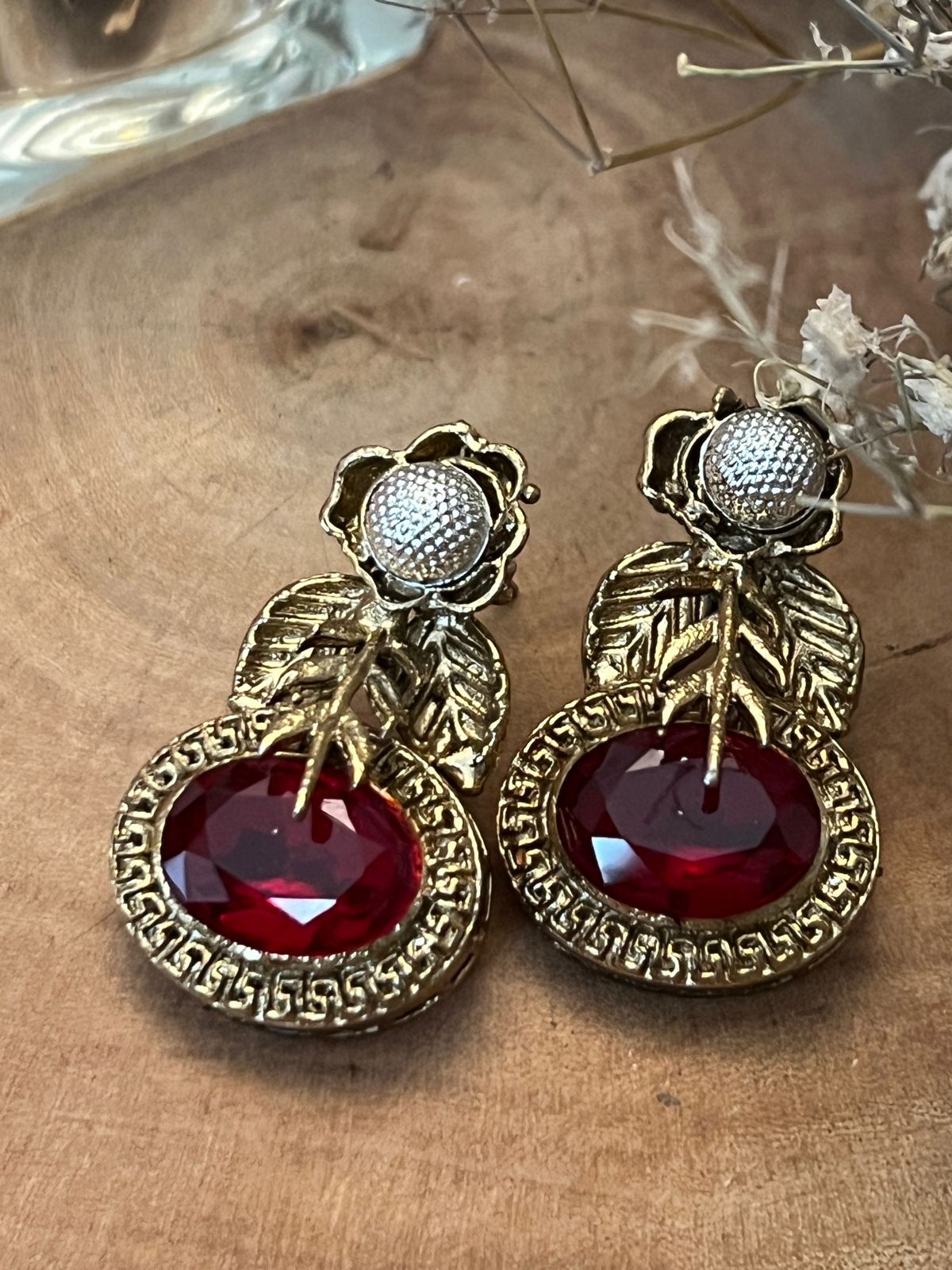 gold-detailing, champagne, red or dark blue semi-precious stones